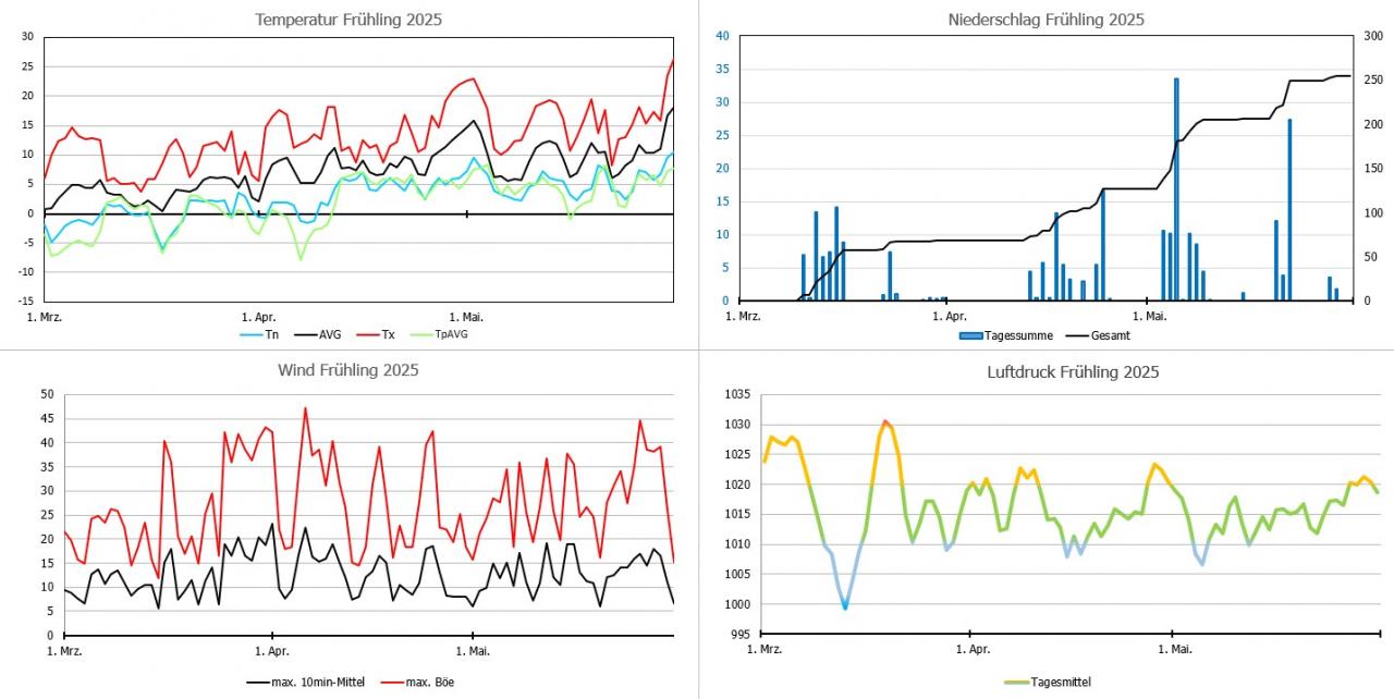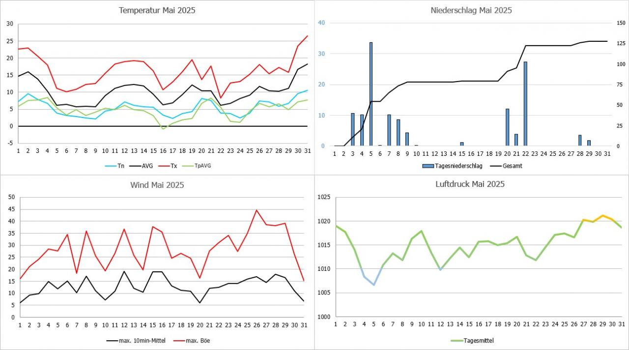 Der November war normal temperiert und zu trocken. Bis auf zwei bis drei Tage verlief der Monat eher unauffällig. Im Grunde war dieser Monat von der Temperatur zweigeteilt in eine noch relativ milde erste Hälfte und eine leicht unterkühlte und teils sehr winterliche zweite Hälfte. Mit einem Minimum von -10,5°C gabs sogar einen Stationsrekord (seit Ende Sep. 2024) da der letzte Winter so mild war, dass selbst der Januar nicht unter -10°C kam.