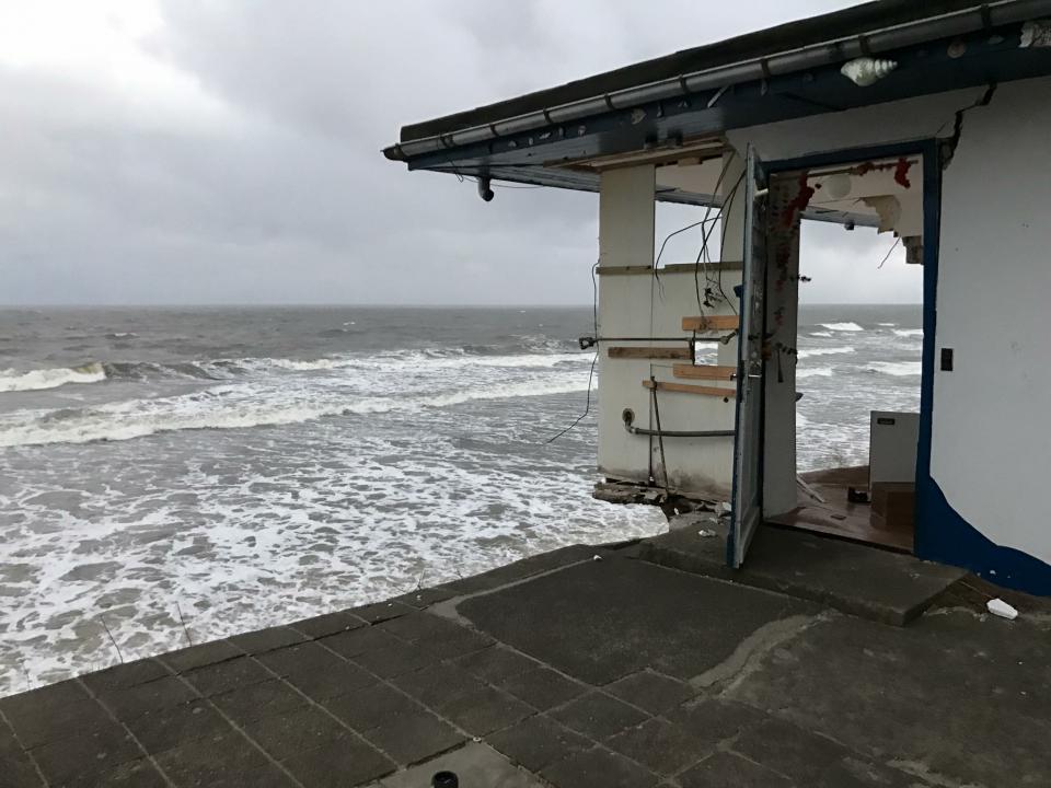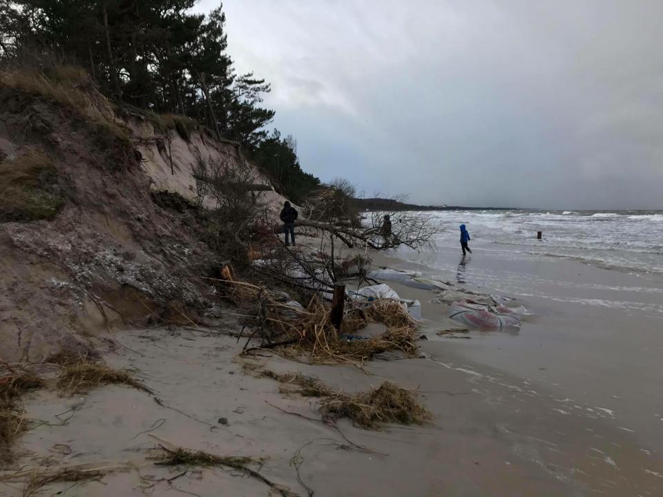 Oje das sieht übel aus! Enorm, dass ein einziger Sturm aufgrund der Wellen 15 m abtragen kann.