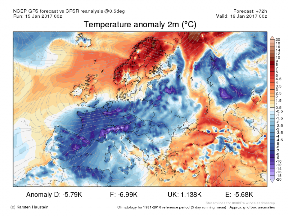 Auch am Alpenrand und inneralpin könnte es schneien aufgrund der Nähe zum Mittelmeertief.Bei UKMO würde die leichte Milderung zur Wochenmitte auch etwas weiter ins Landesinnere vorrücken, das wird wohl Nowcast: