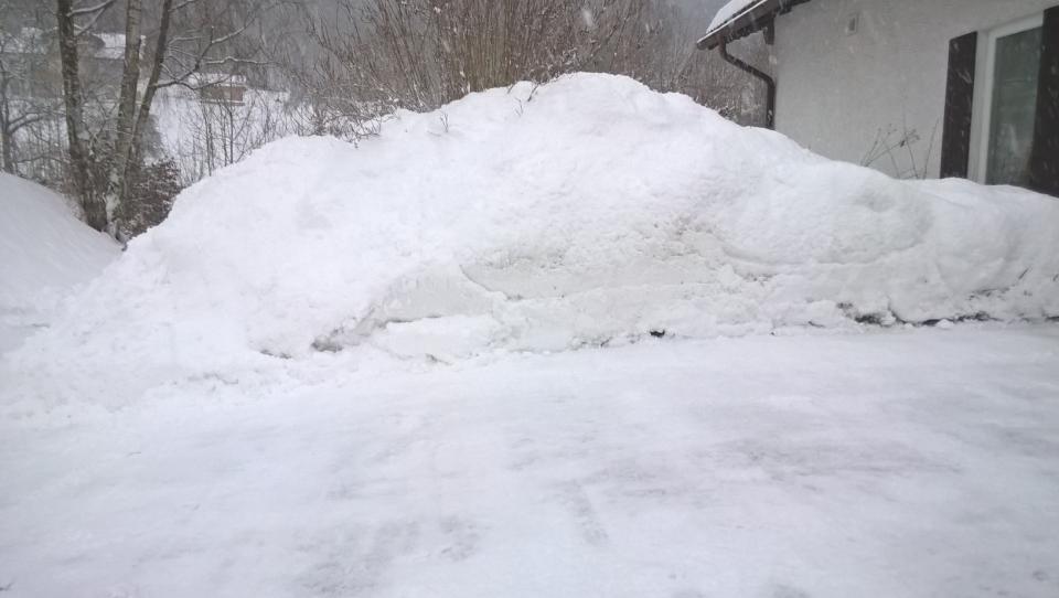 Was schätzt ihr, wie lange mein Schneehaufen im Vorgarten in diesem Jahr hält, bevor ganz weggetaut ist?