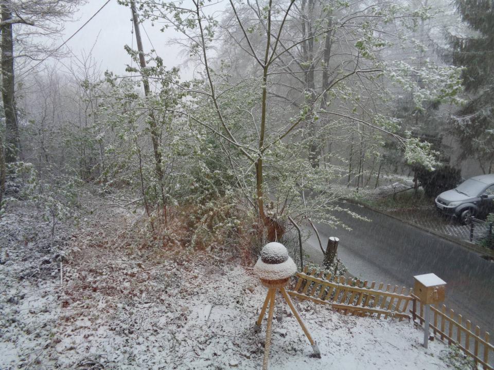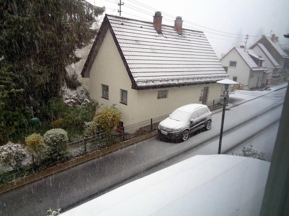 mit einer dünnen Schneedecke (5-10 cm) in der Früh los. Noch dazu sinken die Temps mit