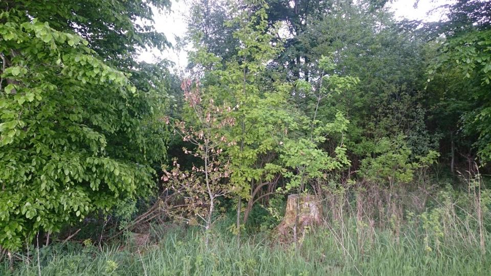 Ein paar Eichen haben noch kleine Blätter, da sind noch die alten vertrockneten von letztem Jahr dran