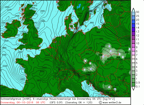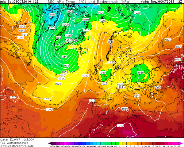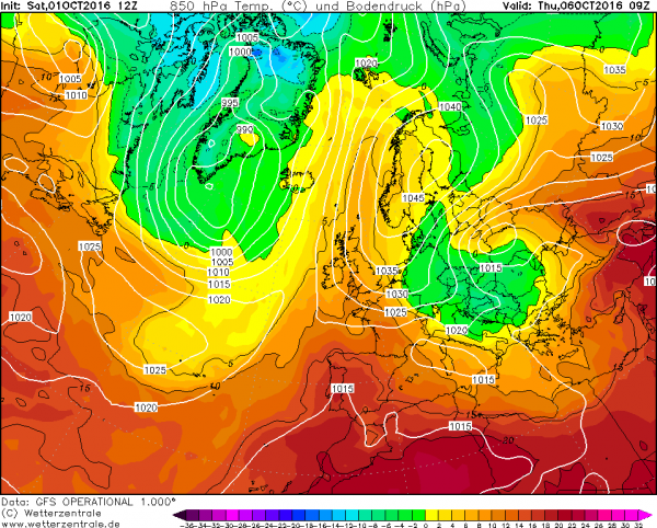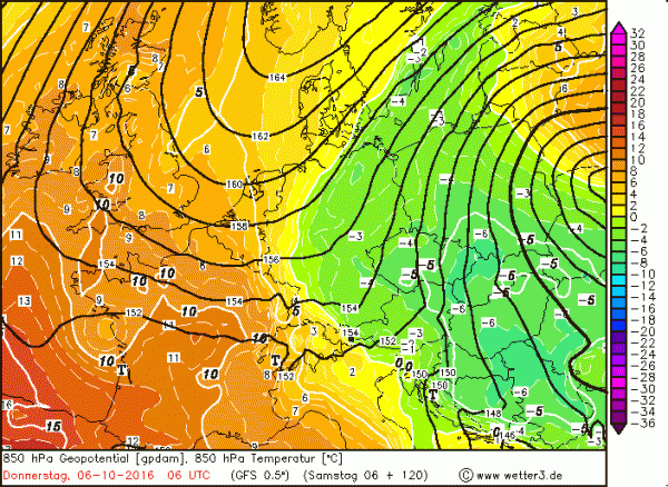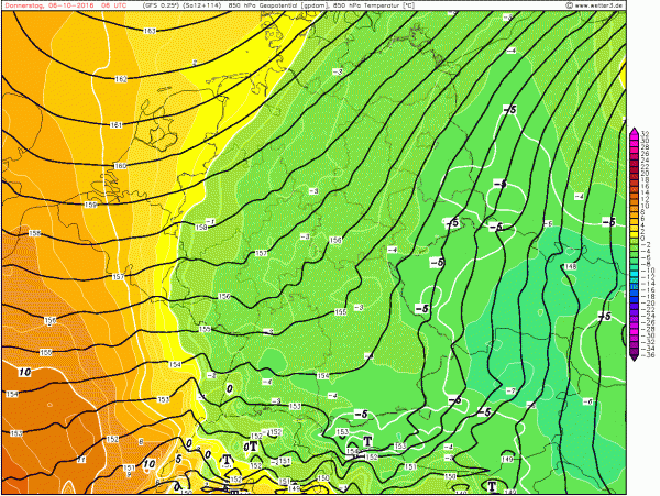 Somit KLA wie im letzten Jahr Mitte Oktober mit bis zu - 3 °C in 850 hPa.
