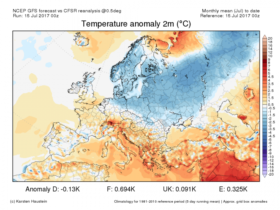 (15.07.2017, 09:55)Wetterleuchte schrieb: Link ist nur fuer registrierte User sichtbar. registrieren oder login.Schauen wir aber nur auf die Temperaturabweichungen, dann können wir die Zusammenhänge überhaupt nicht erkennen. Wir sind in etwa in dem Niveau, wie es 61-90 war. Alles okay, denken wir. Aber es gab halt ungewöhnlich viel Regen. Nun fehlt tatsächlich die Wärme in Verbindung mit viel Sonnenschein. Damit wäre es von Vorteil, wenn die klimatische Temperaturabweichung zu 61-90 bei uns nun rasch ins Positive hochschnellen würde. Also Klimaerwärmung im Moment und hier: her damit!