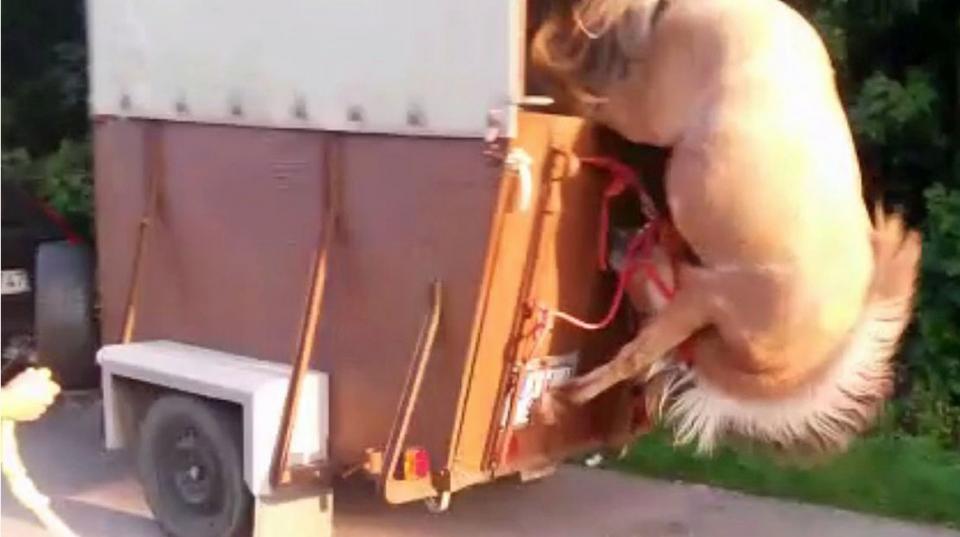 Kuriosität: Pferd stürzt kopfüber aus Anhänger, rollt sich dabei aber elegant ab - und bleibt dadurch unverletzt!