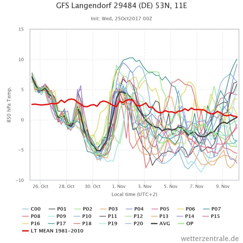 Ich bin mir wegen der unsicheren Entwicklungsmöglichkeiten in fast alle Richtungen noch viel zu unsicher, um eine ernsthafte Prognose abzugeben, wie es nach dem Monatswechsel bei uns und in Skandinavien weitergehen wird. Es könnte also auch durchaus in eine Westdrift wechseln mit feuchtkalten Ambitionen, also Schmuddelwetter im Flachland und auch in den Mittelgebirgen. Daher ruhig Blut an die Wintersüchtigen. Machen wir doch erst einmal den Oktober platt!