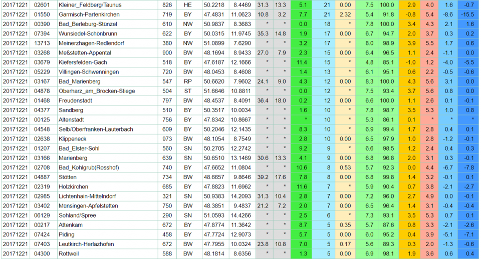 Immerhin hat der Winter 2017/18 dadurch bereits die Winter 2006/07 und 2013/14 (jeweils 9 Tage mit Schneedecke) hinter sich gelassen. Und bei der max. Schneehöhe wurde 1997/98 (4 cm) und 2013/14 (1,5 cm) überholt.