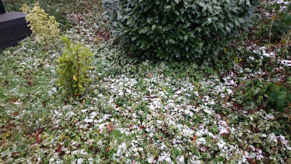 Takt 0,8°C, mäßiger Schneefall, die Schauer stauen sich hier zum langanhaltenden Schneefall. Je nach Untergrund Schneereste oder durchbrochene Schneedecke von 2cm.