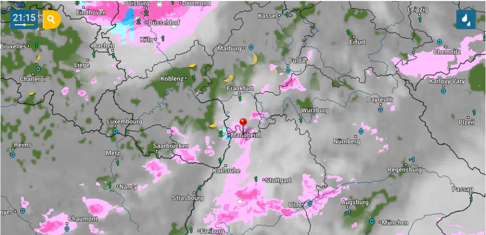 Das Schneffallgebiet dürfte jetzt bald Dortmund/Köln errreichen! (Wie gesagt 5-10 cm könnten