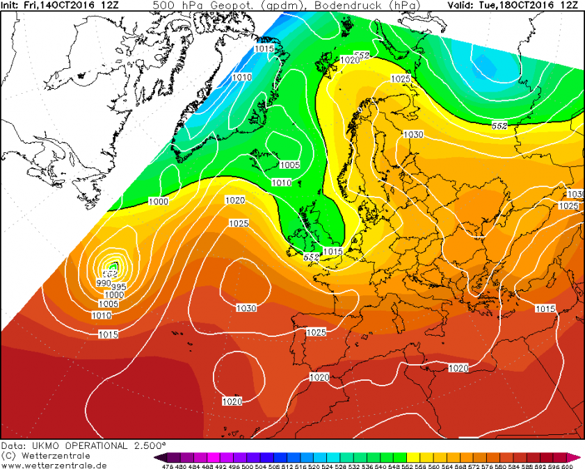 Hier die Entwicklung der Luftmasse in 850 hPa vom 24.10.2016 und 26.10.2016: