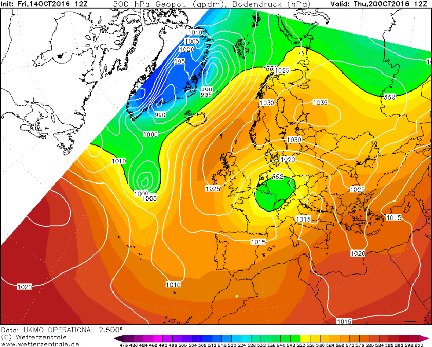 Das Skandi-Hoch und und die Luftmasse am 26.10.2016 vom 18z GFS-HL:
