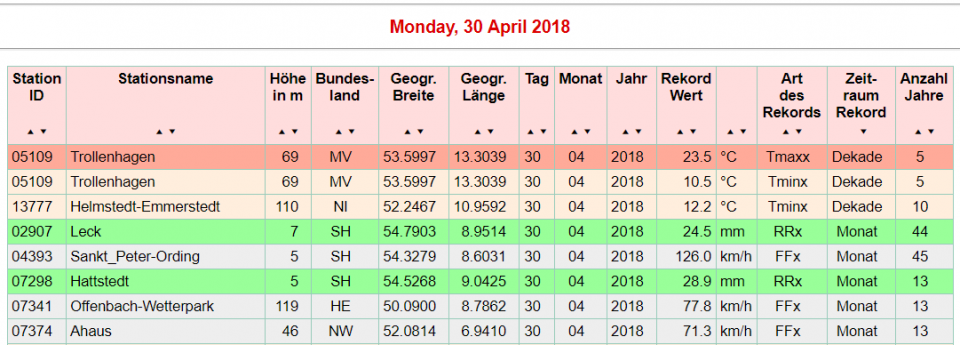 Da es gestern sehr viele Dekadenrekorde gab heute ausnahmsweise mal nur die Monatsrekorde hier aufgelistet.