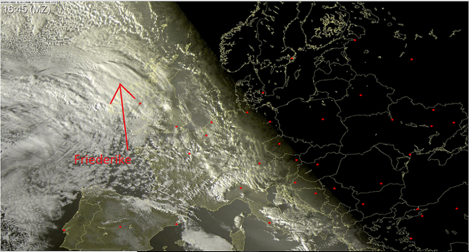 Der Wolkencluster der jetzt Irland erreicht ist "Friederike".