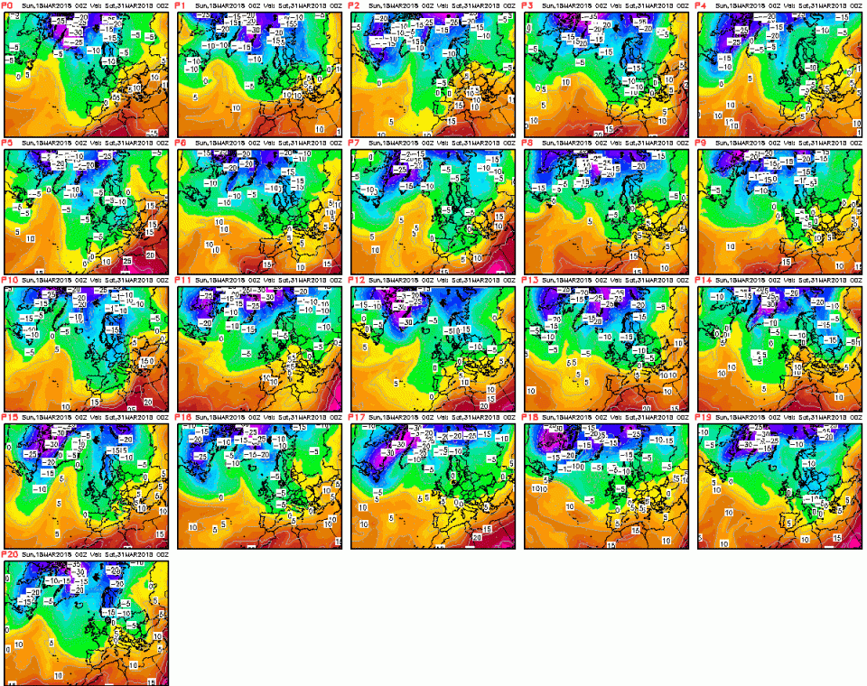 Im ENS für den 1.April zeigt GFS einige sehr winterliche Tröge (P3, P10, P15, P19) ...
