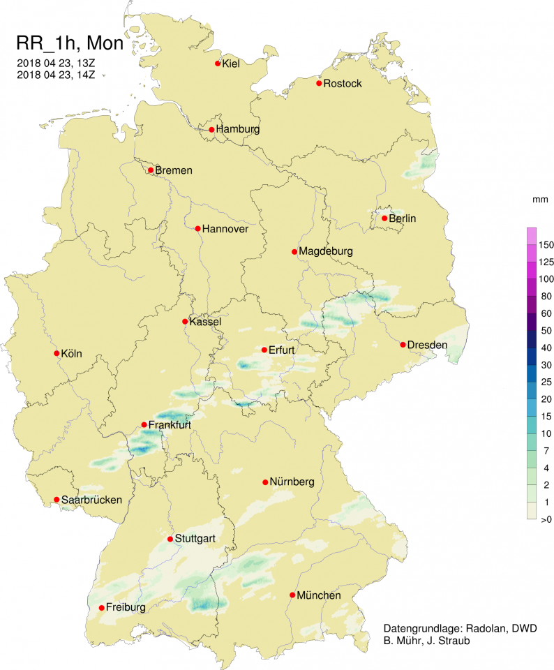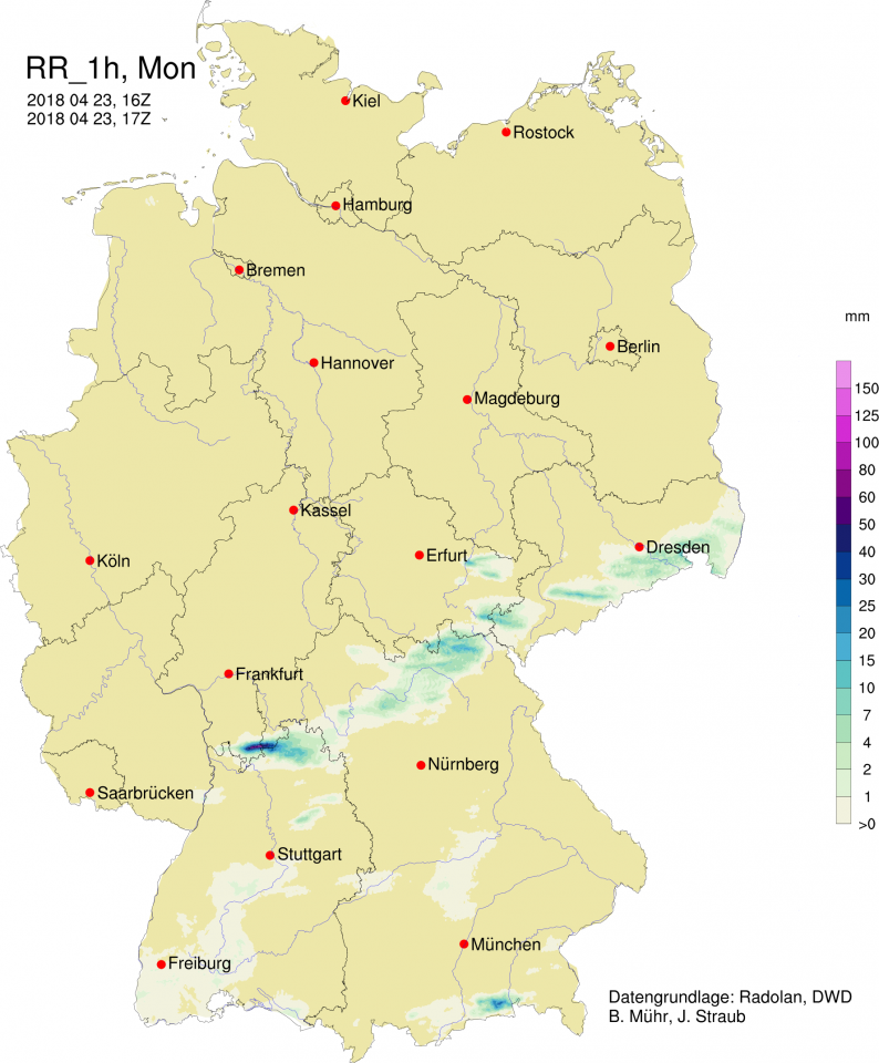 Aktuell in Karlsruhe mäßiger Regen und ein paar entfernte Blitze - immerhin.