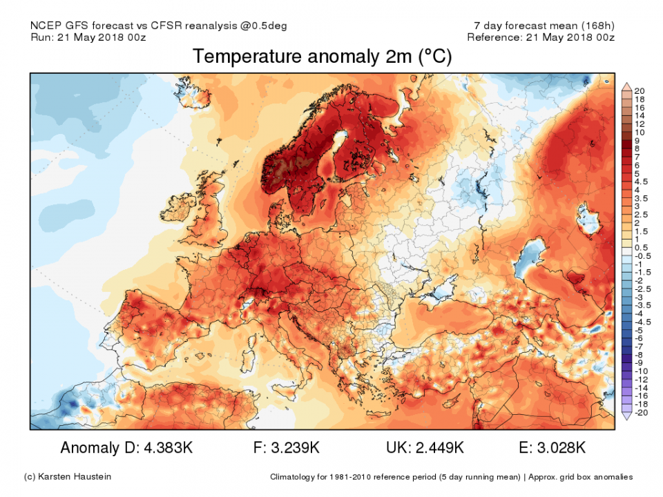 Aktuell hat der Mai schon einen Monatsschnitt von ca. 14,3°C. Dies entspricht einer Abweichung von 2,2 K.