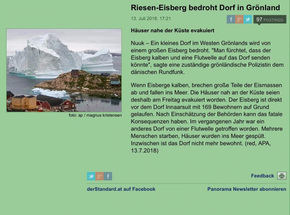 Im Juni wurde ein riesiges Kalbungsereignis gefilmt beim Helheim- Gletscher. Ein 6 Kilometer großer Eisberg ist innerhalb von 30 Minuten abgebrochen, das sind 3 Prozent des Jährlichen Eisverlustes innerhalb von 30 Minuten.