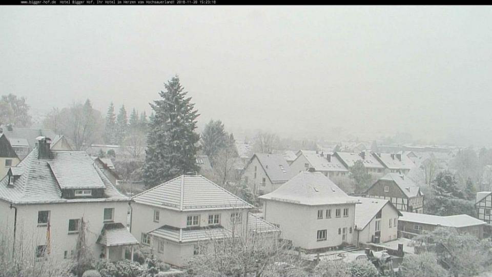Takt.: 0.6 Grad und es schneit :-) der zweite Schnee der Saison und er bleibt schön liegen, sogar auf den Straßen, hätte ich nicht gedacht. Hoffe es schneit bis zum Sonnenuntergang und dann kann es aufklaren, während der Wind abflaut.
