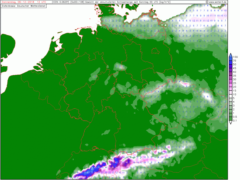 Und selbst Schnee ist Mittwoch/Donnerstag eine Option: