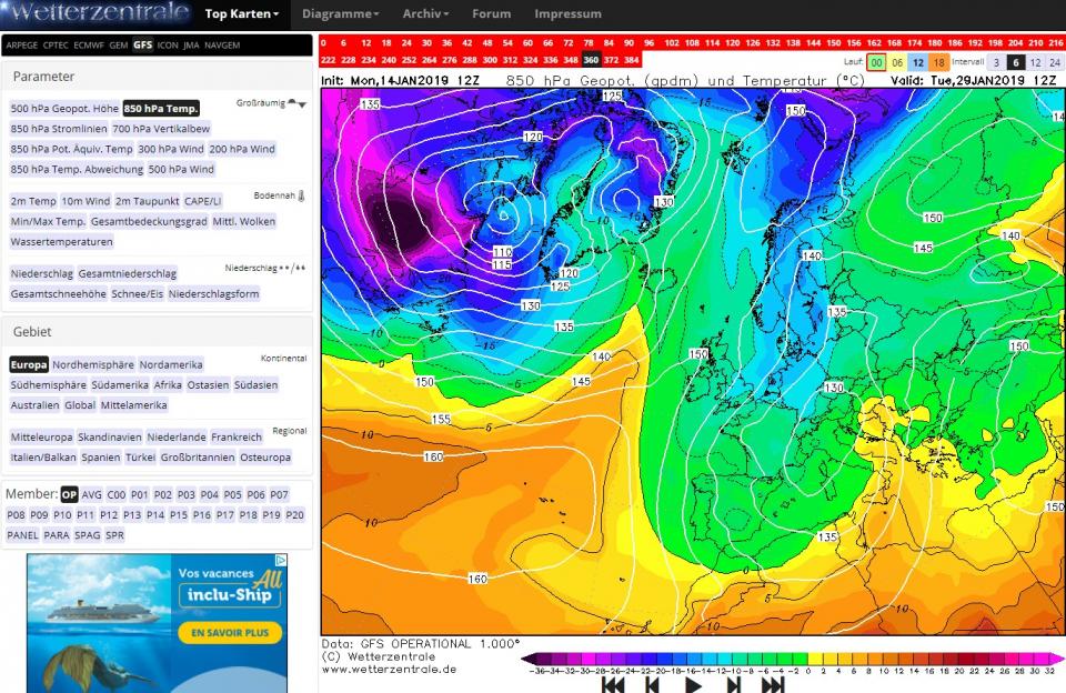 Parametereinstellung "850 hpa Temp.". Dann bekommst du so eine Grafik:
