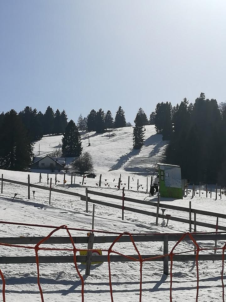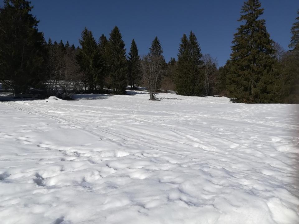 Im Jura auf 1100m immer noch Schnee und Skifahrwetter. Der Schnee hält sich trotz Frühlingstemperatur gut
