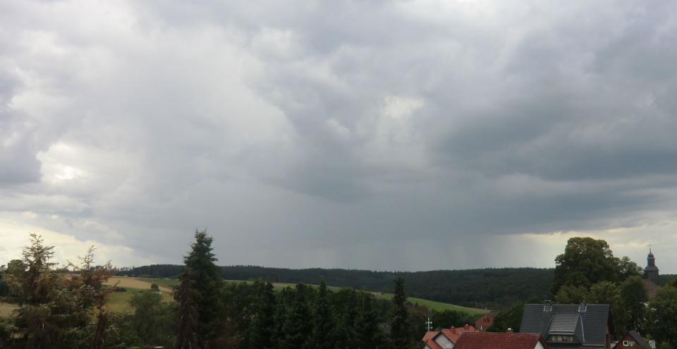 Das Gewitter brachte allerdings auch nur 3 mm. Es folgte noch ein Regengebiet aus Südwesten nach, teilweise noch mit Starkregen. Ergibt: 8,3 mm in Summe.