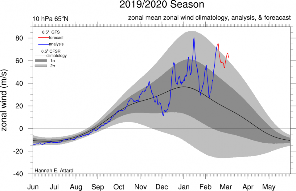Manchmal kann man sich nur wundern, dass die Mildvarianten so oft "gewinnen". Da kommt doch tatsächlich das stratosphärische Deplacement in 30 hpa, wie oben im Beitrag vermutet, und dann wirkt das auch wirklich noch bis runter in die untere Stratosphäre und sogar bis in die Troposphäre, aber in der Troposphäre klemmt es dann trotzdem, weil zu viel Kälte auf den Atlantik ausfließt, die den blockierenden Hochdruck verhindert. Und so kommen wir nicht auf die kalte Seite, sondern liegen mehr im Niemandsland, zwischen den Stühlen oder auf den warmen Vorderseiten der vielen Tiefs...