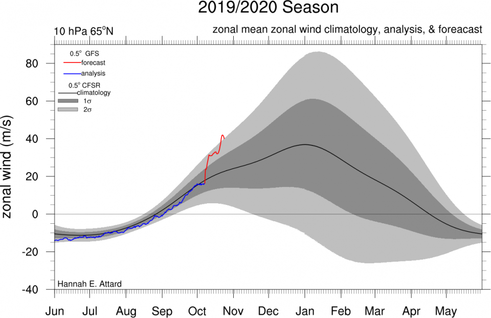 Also nochmal kurz: Die Grafik bezieht sich auf den durchschnittlichen Westwind entlang des 65. Breitengrads in 30.000m Höhe. Gut geeignet für die Beurteilung des Polarwirbels. Uns interessiert aber der konkrete Westwind entlang des 50. Breitengrads in 0 bis vielleicht 3000m Höhe im Bereich Ostamerika bis Osteuropa. Rückschlüsse sind teilweise möglich, aber seeeehr mittelbar. Ich würde dazu sagen Link ist nur fuer registrierte User sichtbar.