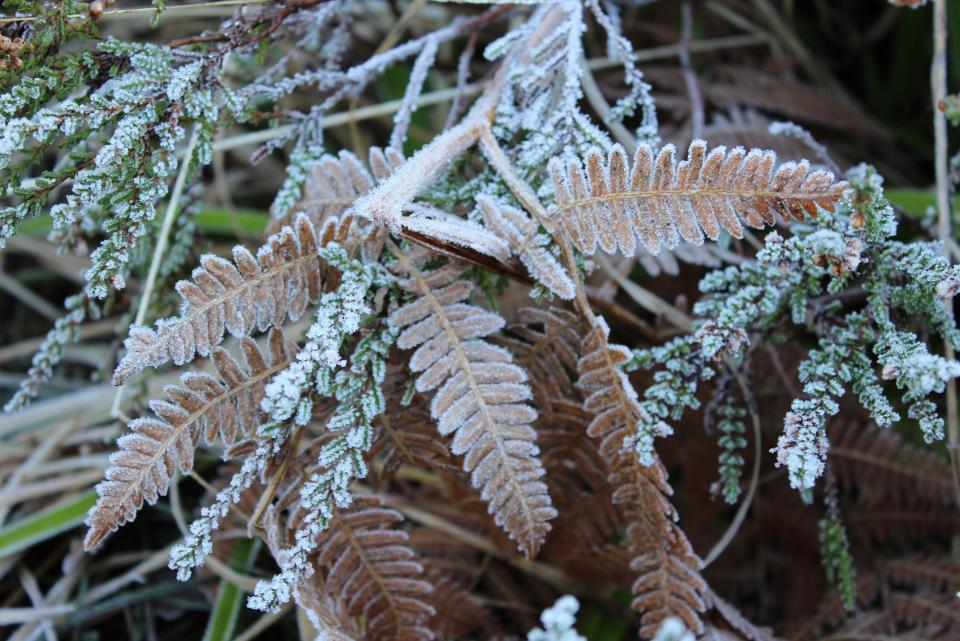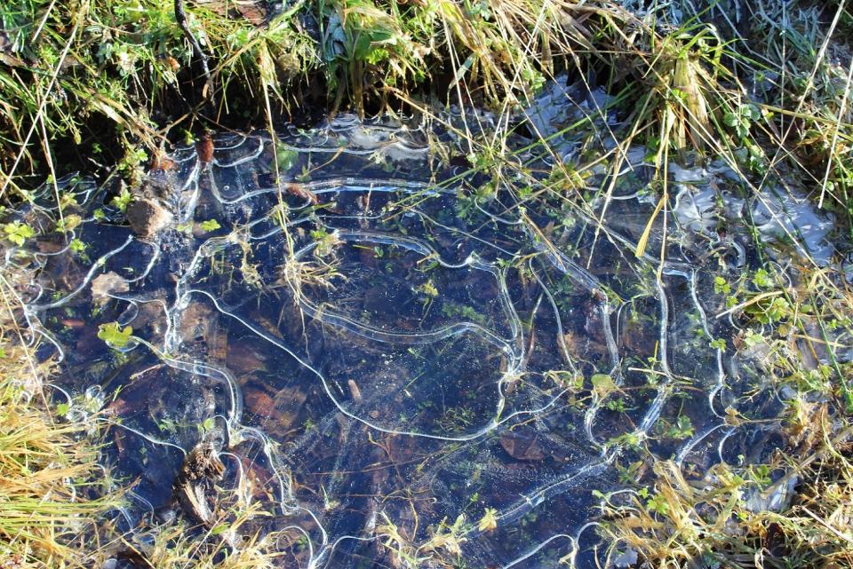 Unterwegs gab es doch ein paar zugefrorene Pfützen und mit Reif bedeckte Pflanzen, ja das ist im Moment wirklich das höchste der Wintergefühle