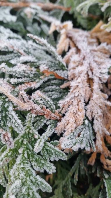 Nachdem es am Mittwoch Morgen leichten Schneefall gab un es sogar kurz leicht anzuckerte, gab es in der Nacht zu Gestern Frost bis -3,5 °C hier Zuhause.
