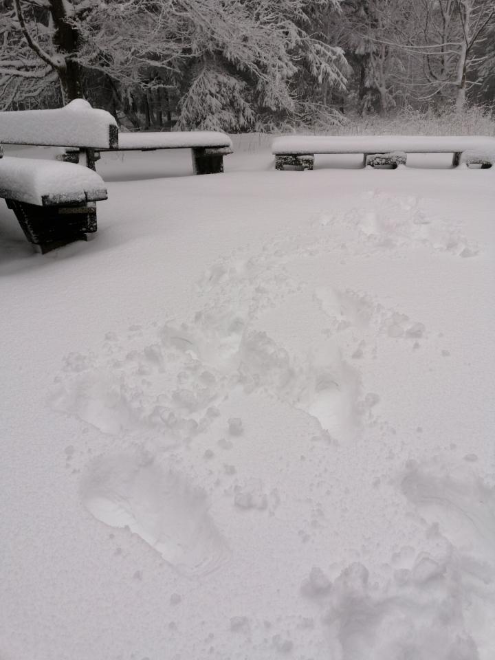 Das Tief brachte auch mir auf 360m die höchste Schneehöhe des Winters... von 2cm.