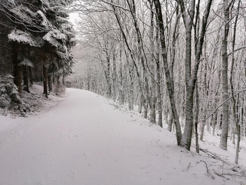 bin malwieder gewandert, und zwar genau in dem Moment, als es aufhörte zu schneien. Das zwar von 520m aufwärts am Rande der Hunau. Aufwärts war wichtig, denn hinter dem Tief wurde es wärmer. War zwar ne Kaltfront, aber ne maskierte. Sie war nicht so kalt, wie die zuvor eingeflossene, sie setzte sich aber aufgrund der Durchmischung durch: