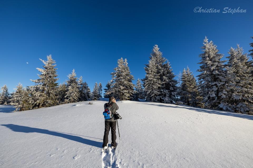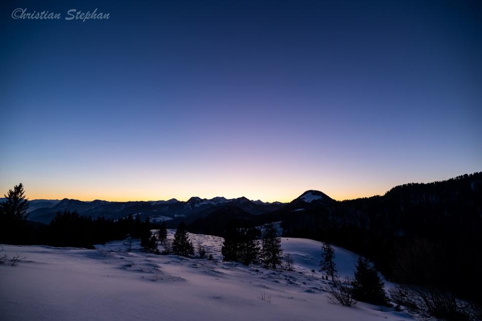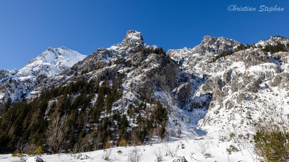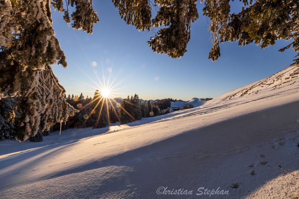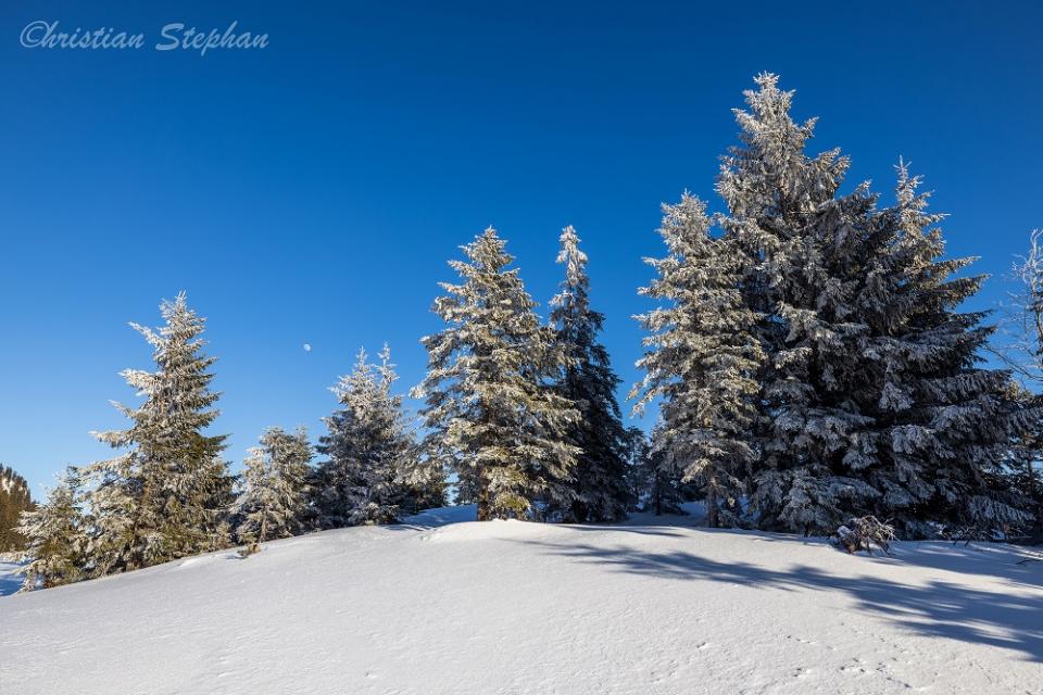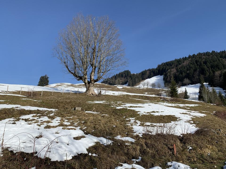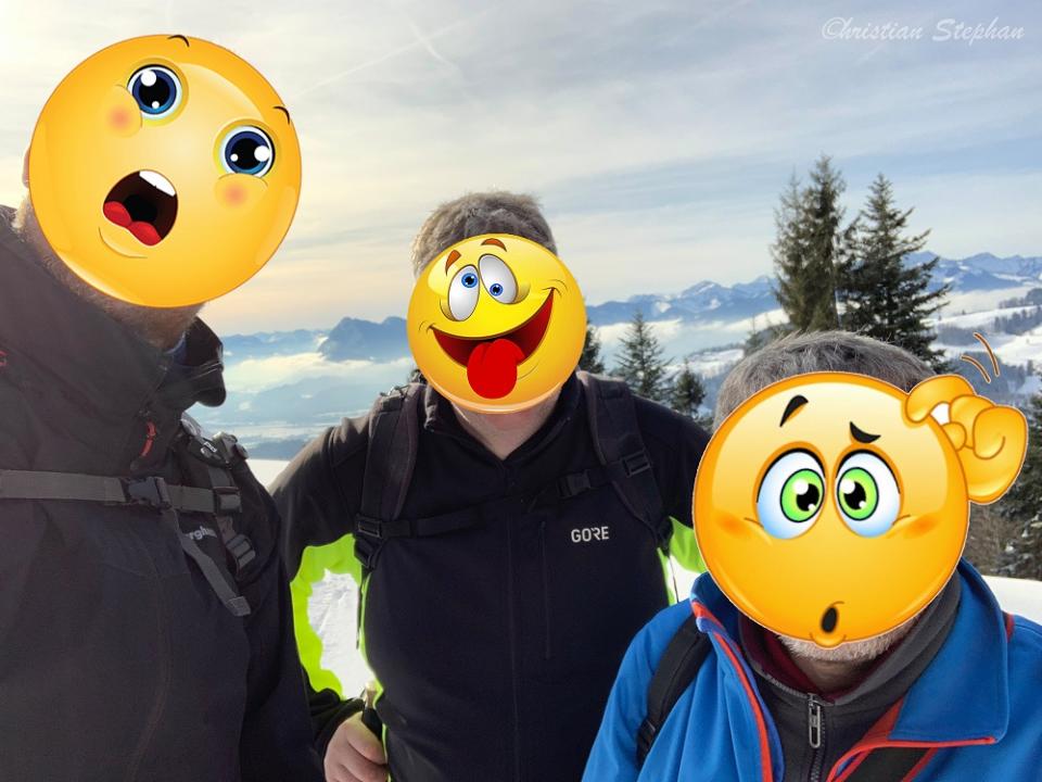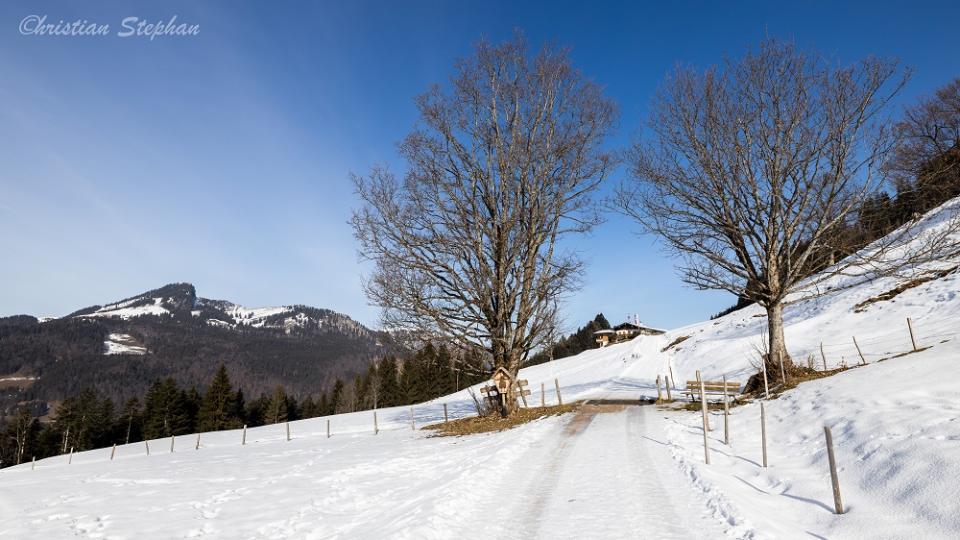 Nachdem ich mich durch dieses Schneemalheur gekämpft hatte, wackelten der Wettergucker und meiner einer entlang der Südhänge am Rettenschöss über weiße Bänder der Sonne entgegen:
