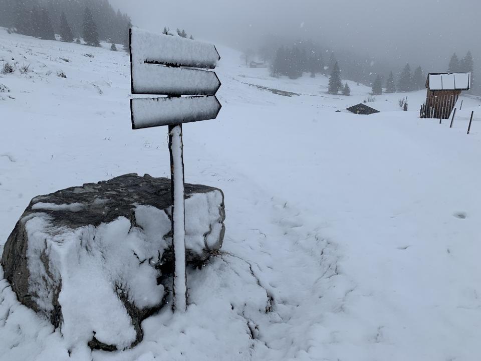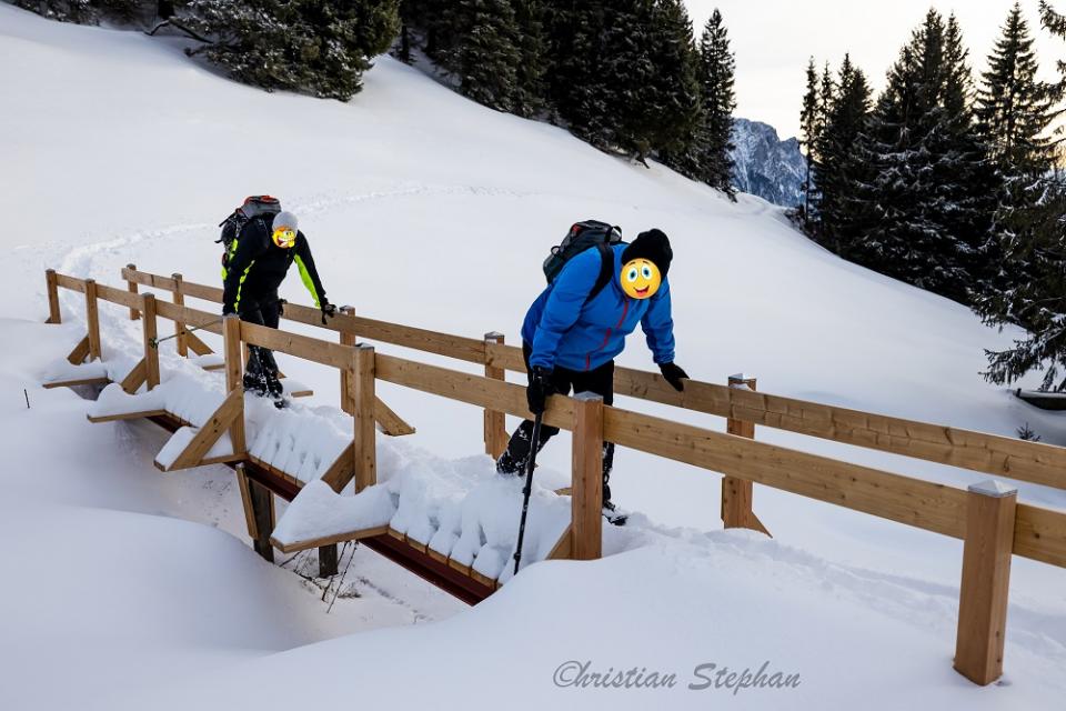 Am Folgetag sollte es wettertechnisch attraktiver werden – mit etwas Neuschnee in der Nacht… und was HATTE es geschneit…: