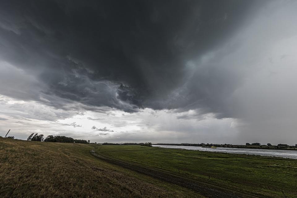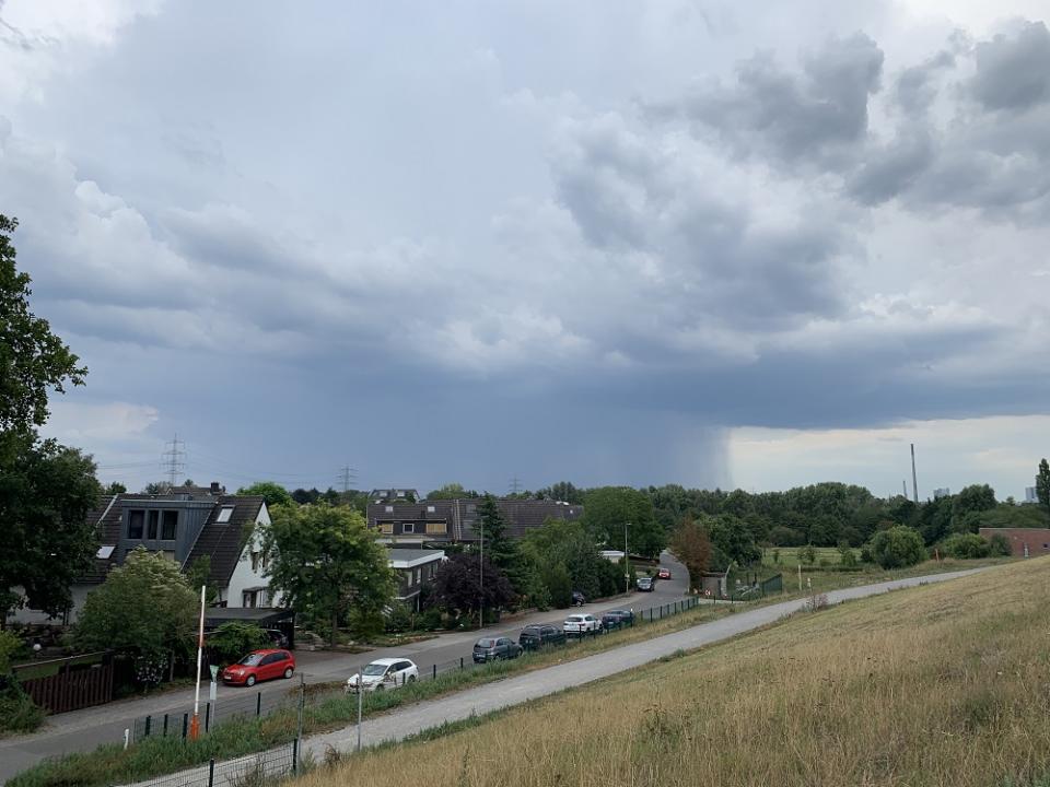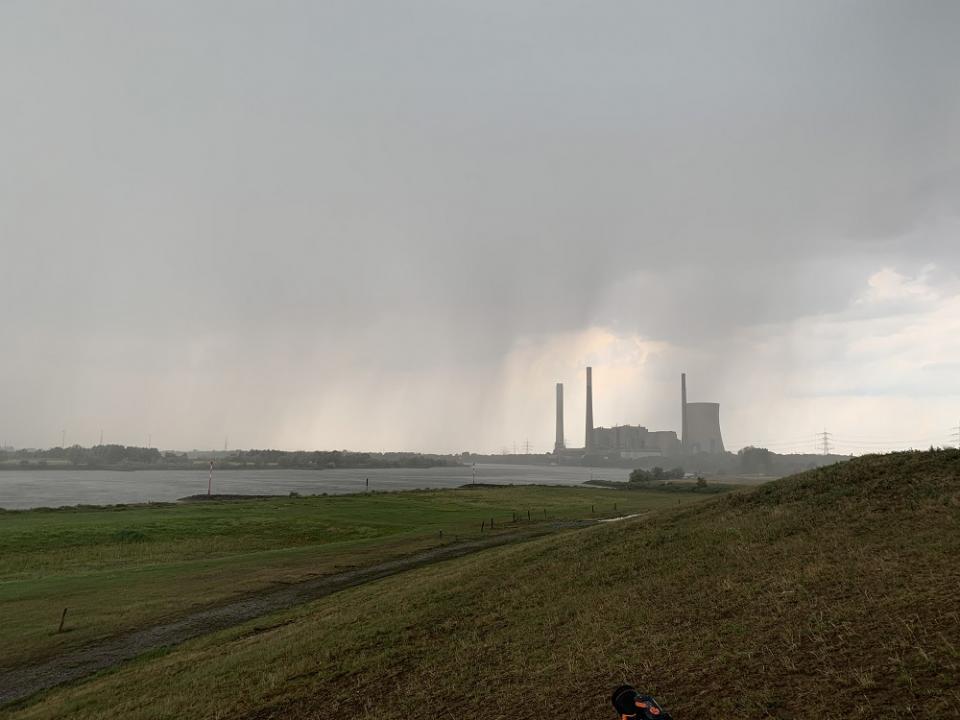 Für diesen Tag stand bei mir eine Nachtschicht auf dem Plan und für den Nachmittag wurde vor möglichen unwetterartigen Überentwicklungen gewarnt. Daher positionierte ich mich am frühen Nachmittag bei fast klarem Himmel an meiner üblichen Stelle am Rheindamm bei Dinslaken (Nahe Rheinkilometer 800).