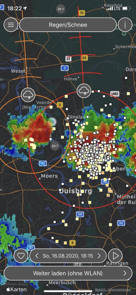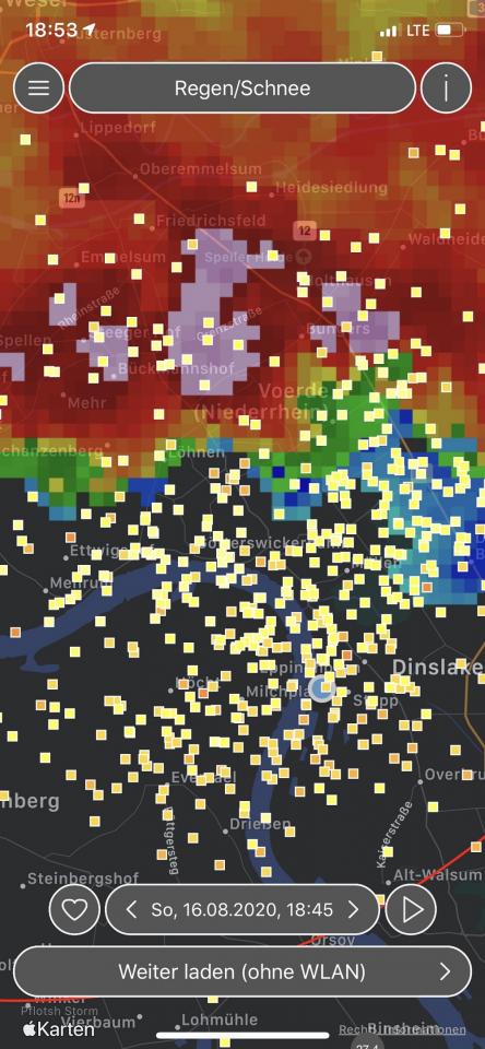 Auch das Radar zeigte eindrucksvoll, was da gerade über mir passiert war: