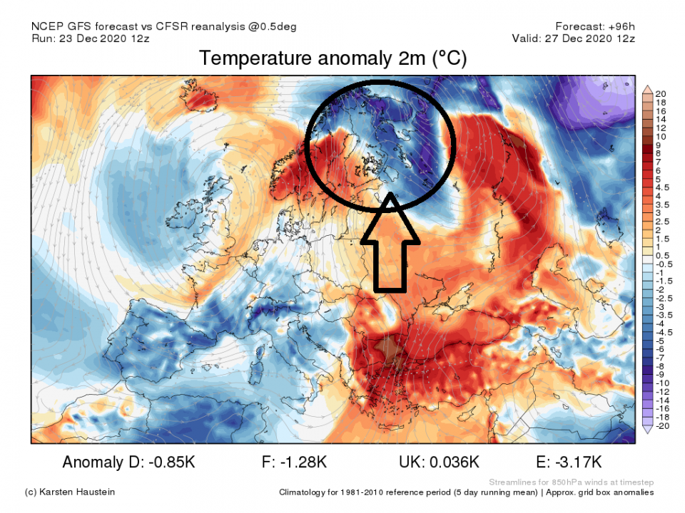 Trotz grundlegend beeinflussender und überdeckender Tiefdruckzone / Troglage, könnte sich am Samstag und zum Sonntag hin zwischenzeitlich eine bodennahe Hochdruckzone von der Biskaya über die Alpen bis nach Osteuropa erstrecken. Selbige könnte meine Region hier überdecken und für einen aufklarenden Himmel sorgen. Ich gehe mal von aus, dass es vorlaufend zu einer flächigen Schneedeckenbildung kommt. Größere Teile vom direkten Vorland mit eingeschlossen. Die wird wohl keine wirkliche "Macht", aber absolut ausreichend ... ausreichend um die Nachtwerte evtl. schnell in den Keller zu schicken. Vorlaufend dieser gesamt sich umstellenden Wetterlage gab es eine Nacht, welche ich vergleichend gegenüber stelle. Es hatte im Nordteil vom Tal nur rund 3cm an Schnee. Es klarte auf und schickte die Werte ganz schnell auf um die -8Grad. In der Region um Reit im Winkl und weiteren kleinen gallischen Kältelöchern wurden sogar die -10Grad tangiert und teils unterschritten. Somit rechne ich -vorausgesetzt es kommt zum aufklarenden Himmel- mit möglichen -14 bis -16Grad evt. sogar eine regionale -17??? Was für Zeiten, wenn man solch Aussichten schon extra erwähnt!