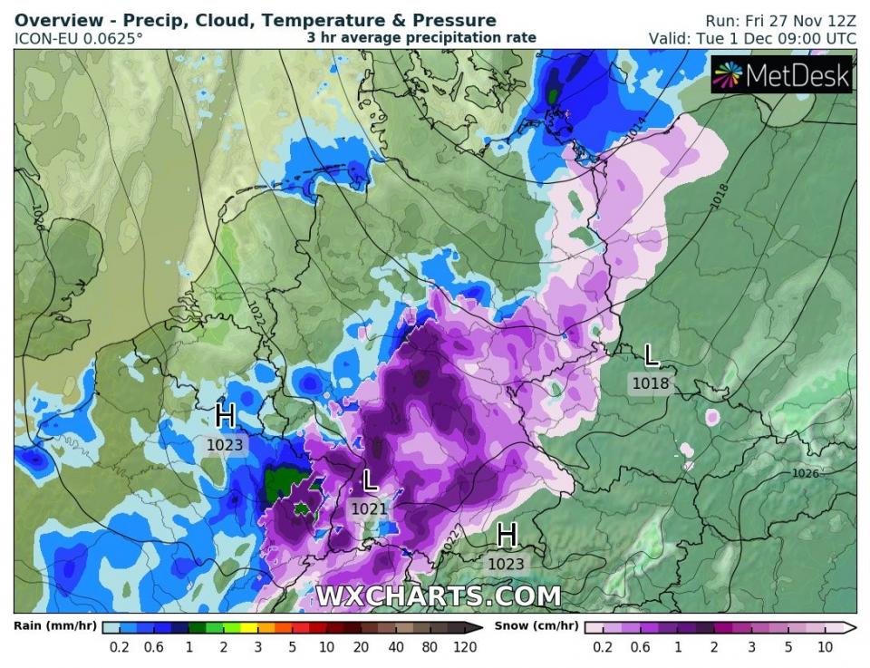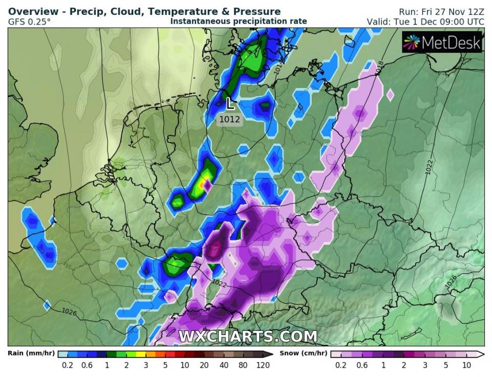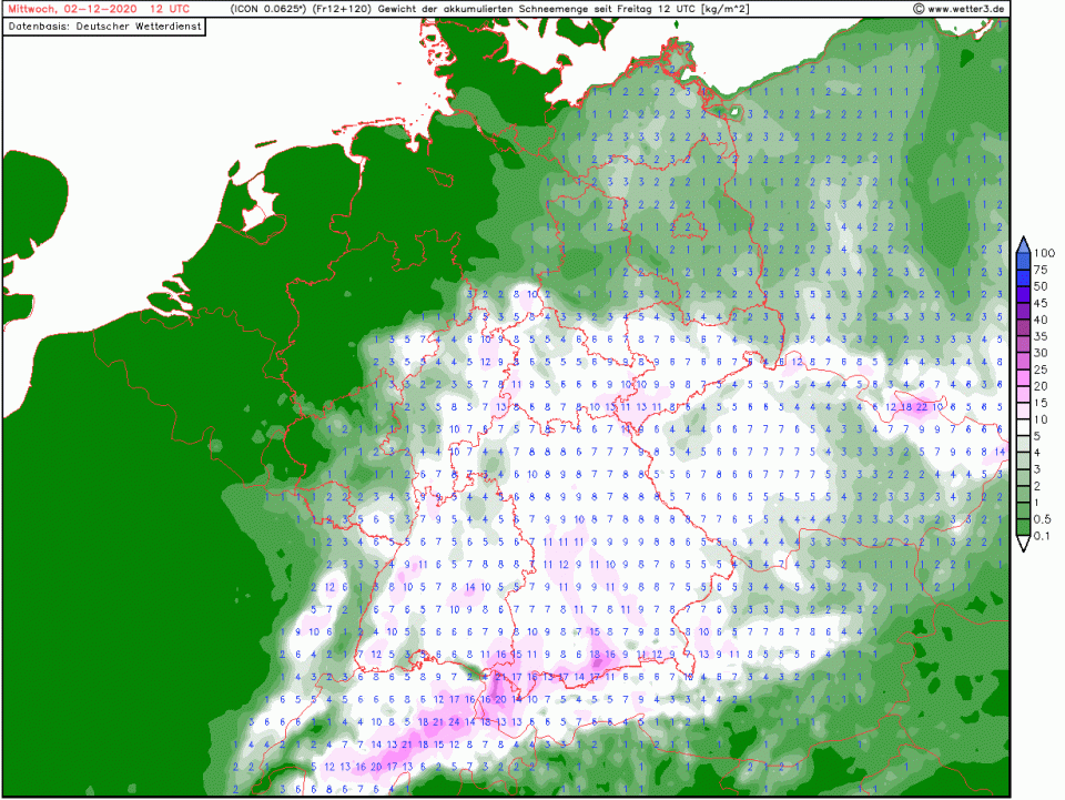 (27.11.2020, 19:45)WetterHahn schrieb: Link ist nur fuer registrierte User sichtbar. registrieren oder login.Südlich einer Linie zwischen Dortmund und Dresden dürfte es oberhalb von 200-300m am Dienstag sicherlich mal "kurz" eine Schneedecke geben. Die Böden sind ja gefroren, weshalb da am Anfang jede Flocke liegen bleibt. Ein pünktlicher Start zum meteorologischen Winterbeginn.