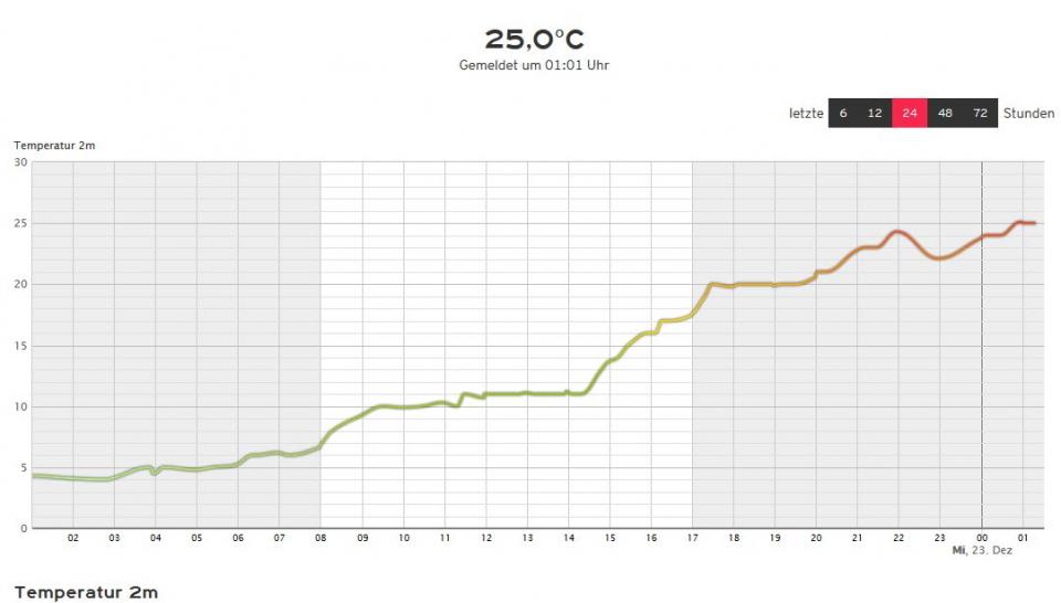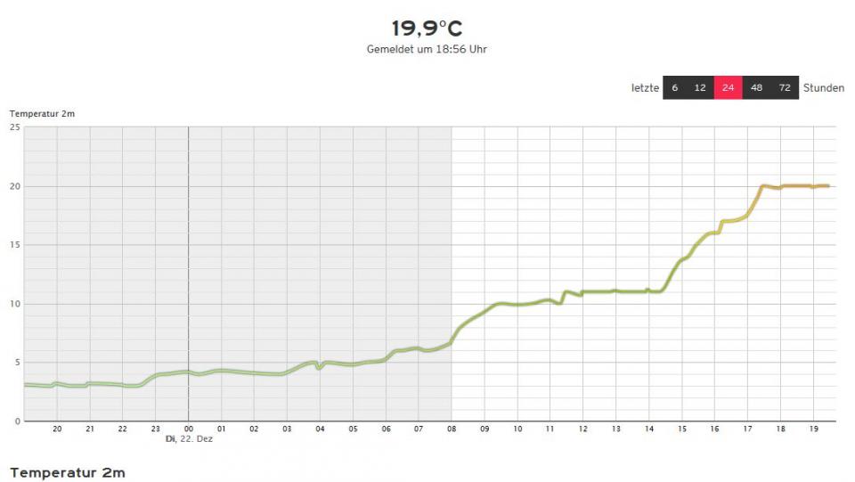 Der Wind ist über dem morgen etwas schwächer geworden, aber nun mit Sonnenfenstern Takt 15,1°C. Ist für mich in windgeschützten Lagen bei Sonnenschein schon T-Shirt Wetter!