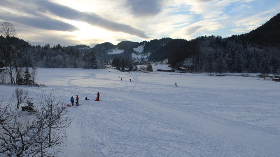 Dazu wieder sehr viel Betrieb auf den Schlittenhängen im Ort.