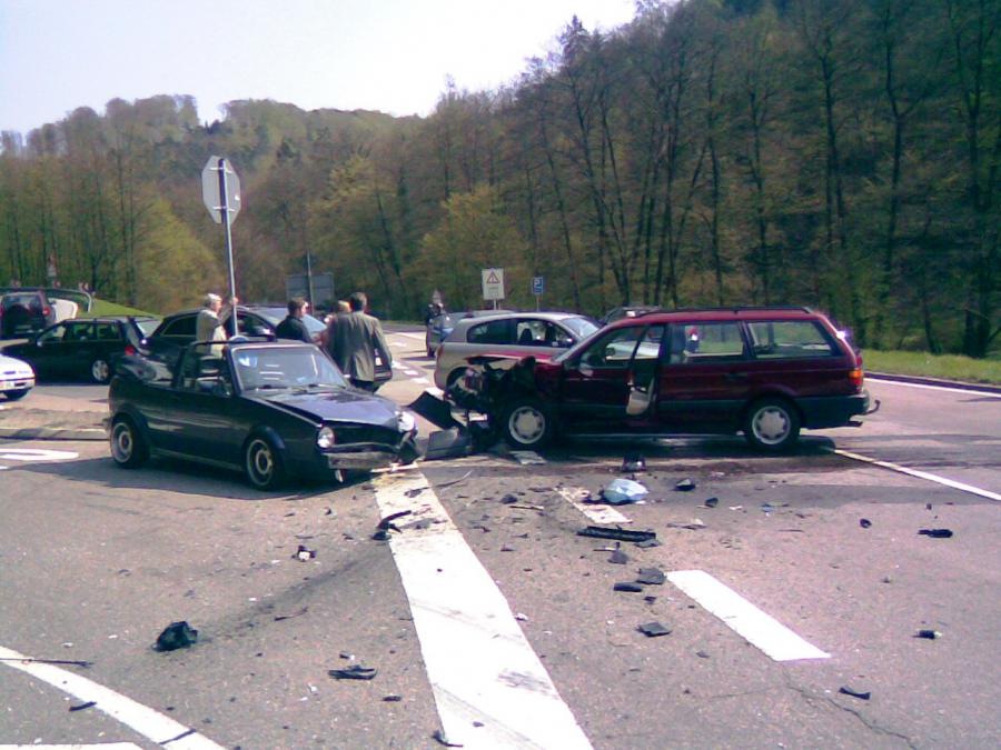 Der Unfall 2009 war schon heftig, ich kam auf der Hauptverkehrsstrasse (auf dem Bild von rechts) erlaubt sind 70km/h, der Unfallgegner, Passat, Linksabbieger im Gegenverkehr hat gewartet, bis ich fast schon bei ihm war und hat dann in mich reingezogen..