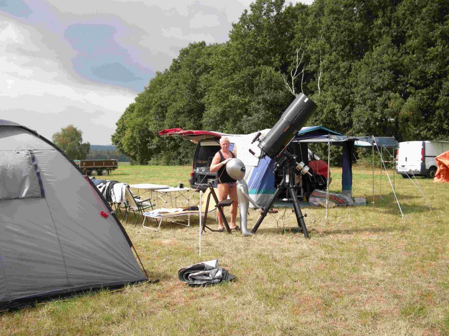 Hier ein echtes Bild von mir am Teleskop vor ein paar Jahren beim Teleskoptreffen, wo man auch meine Beine sieht..