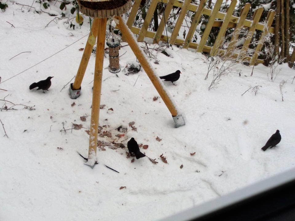 Teilweise waren es bis zu 8 Amseln gleichzeitig, auf Grund des hektischen Gezänks war es mir jedoch nicht möglich, mehr als 6 gleichzeitig abzulichten..