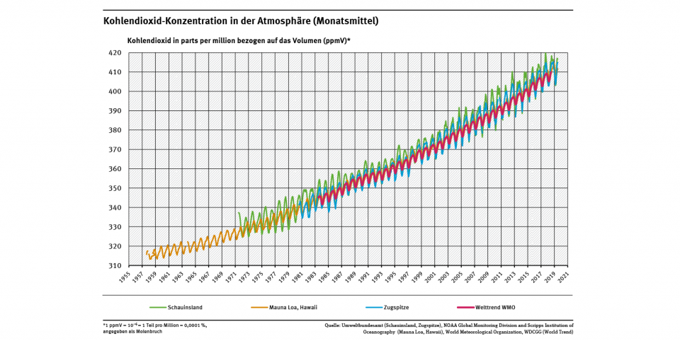 Erstens wird der Schnee in der Sonne auch schon bei Minusgraden angegriffen und zweitens haben wir mittlerweile einen CO²-Gehalt in der Luft von ca 415ppm laut Umweltbundesamt mit entsprechend deutlich gestärkter Wärmeabsorbtionsfähigkeit der Luft: