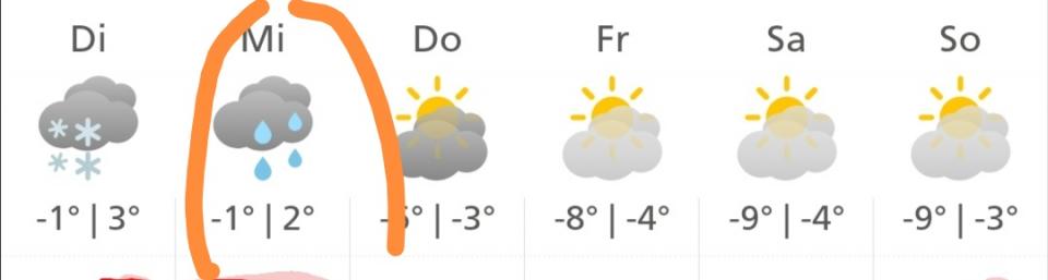 Das ist keine Woche mehr. Ein bisschen milder wird's übermorgen, noch ein bisschen milder am Samstag und der Durchbruch kommt am Sonntag: