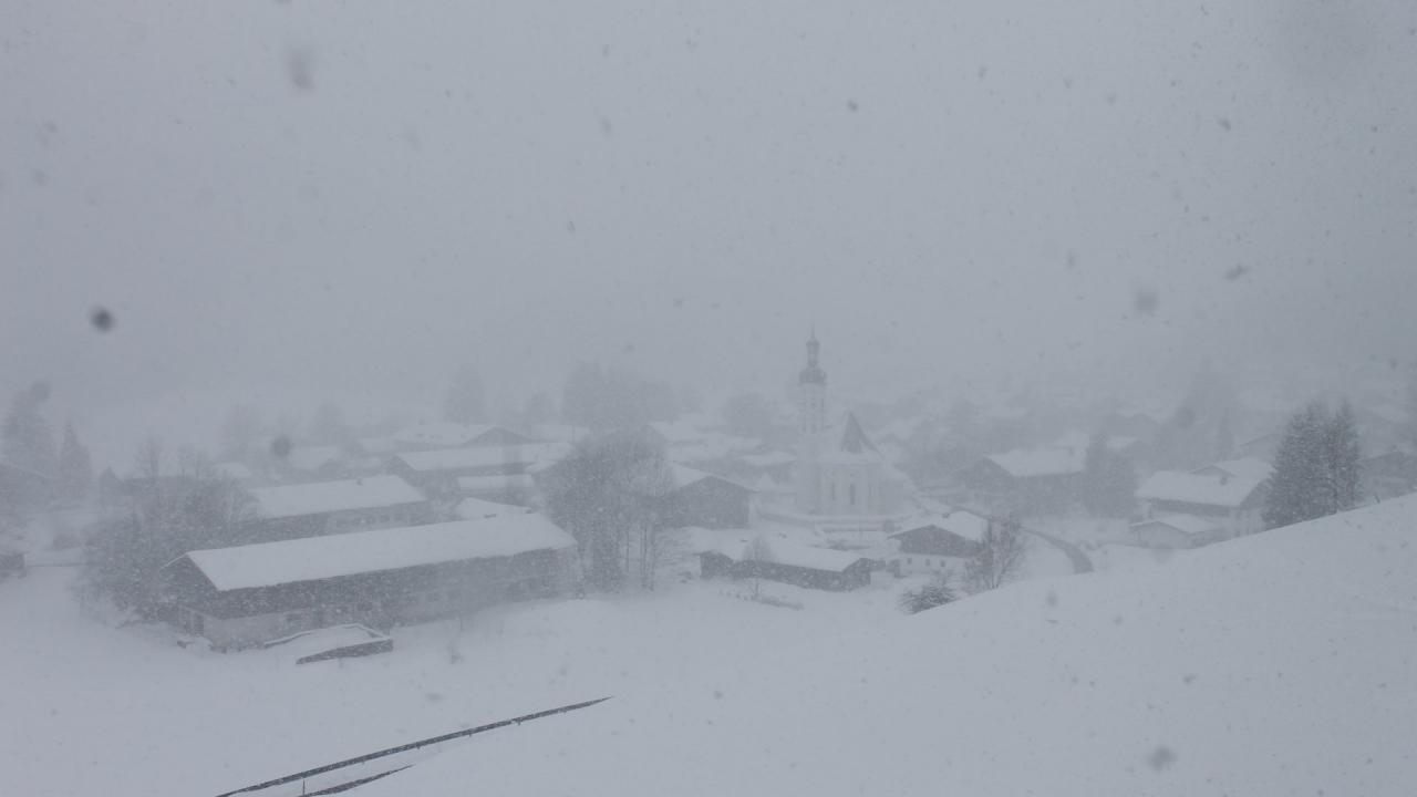 Nachts teils stark böig auffrischender Wind mit länger anhaltenden Schneefällen, welche bis aktuell anhalten.