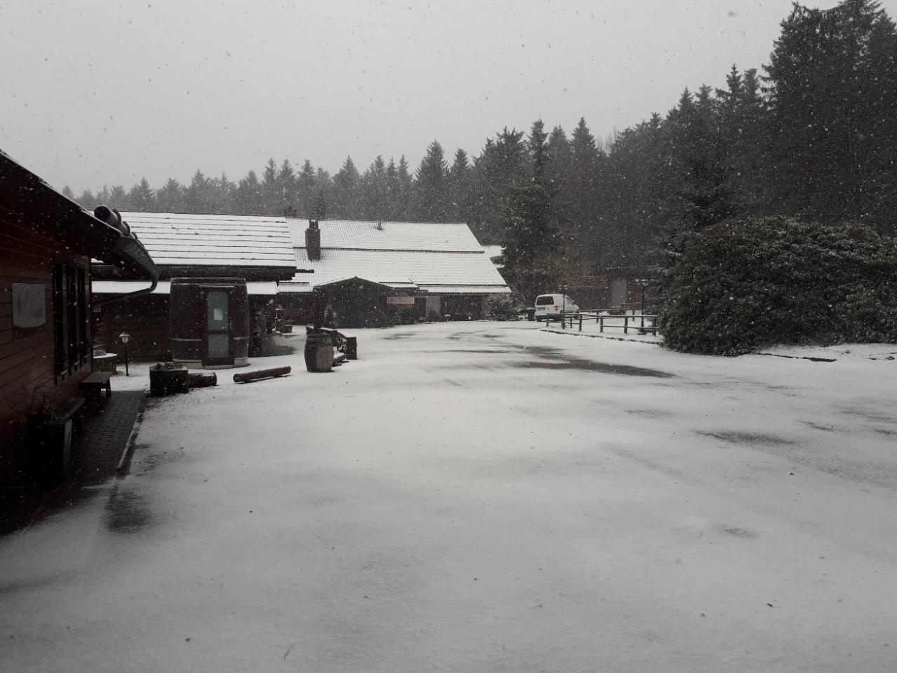 Schneereste fingen bei ca. 450m an, ab 550m war es dünn weiß und auf 750m am Hoherodskopf (763) lag eine geschlossene Schneedecke von etwa 2cm im Mittel.