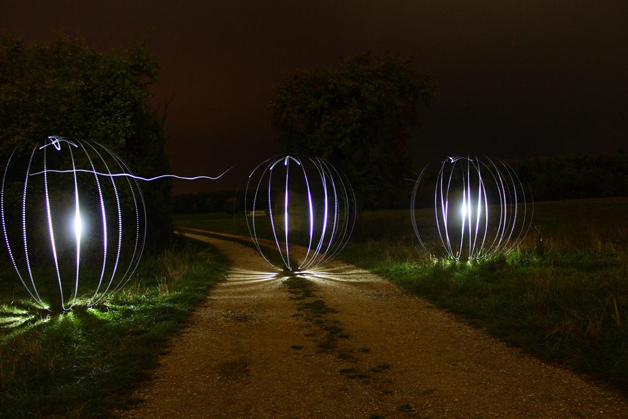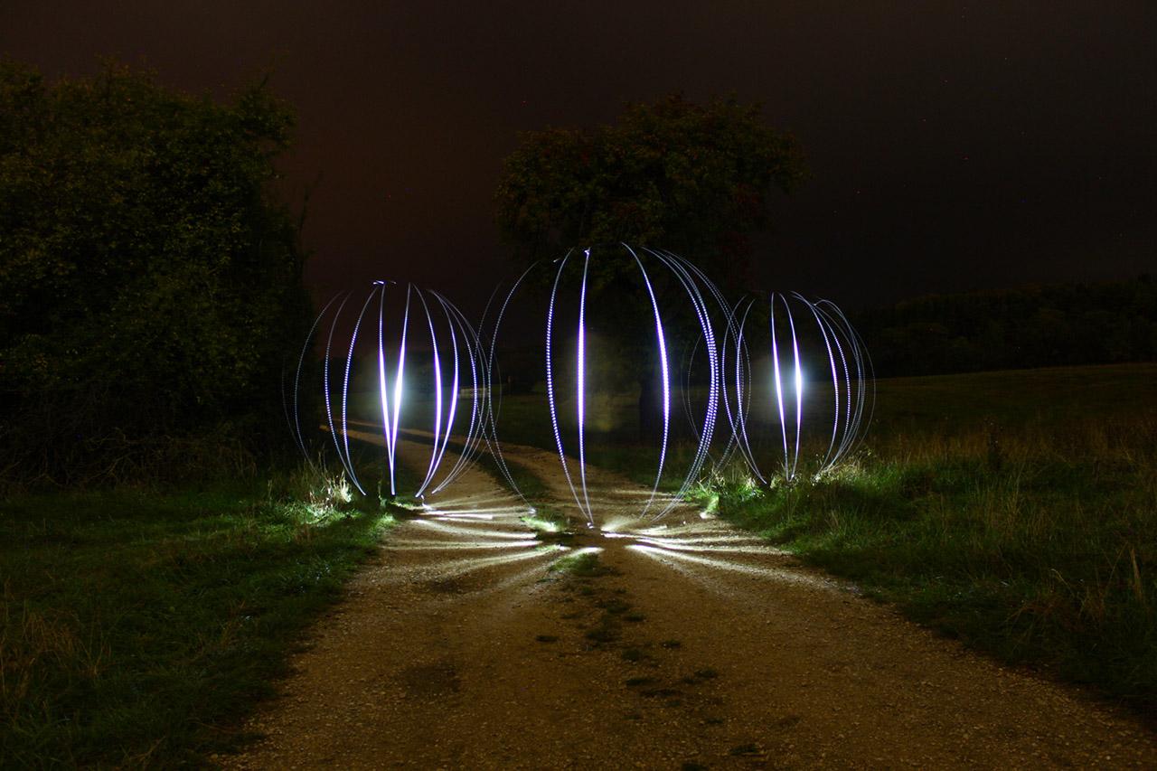 Mal wieder eine neue kreative Fotoidee im Freien mit einer Taschenlampe umgesetzt, die an einem Stab befestigt war und abwechselnd rauf und runter geschwenkt habe an einem Schoktobertag wie heute.