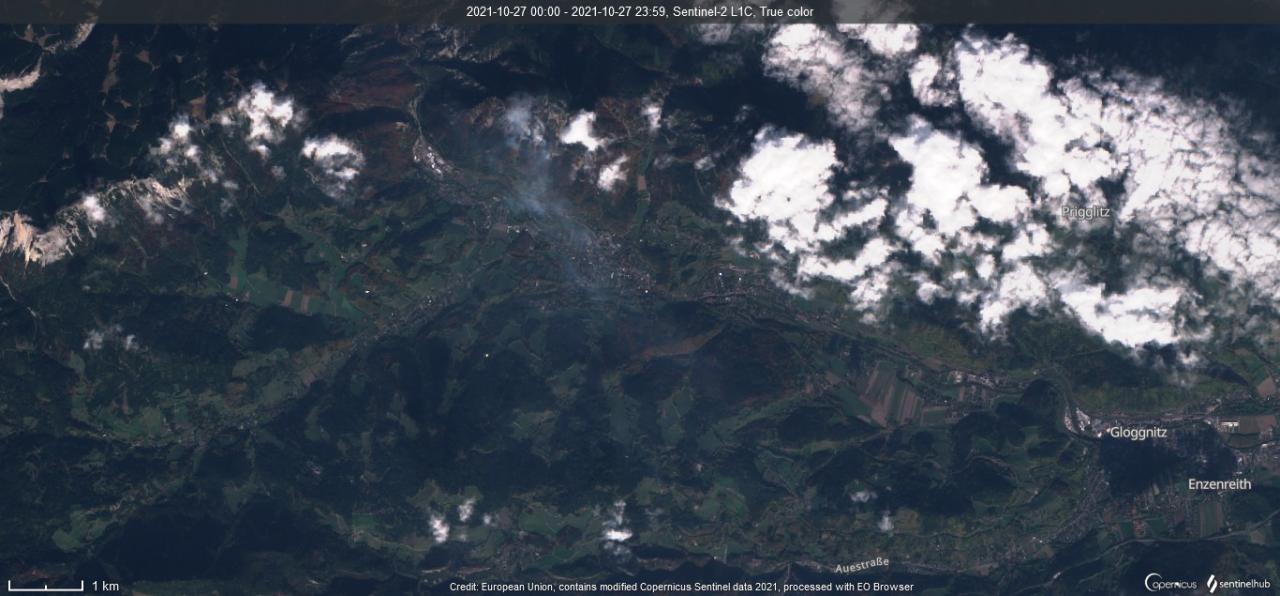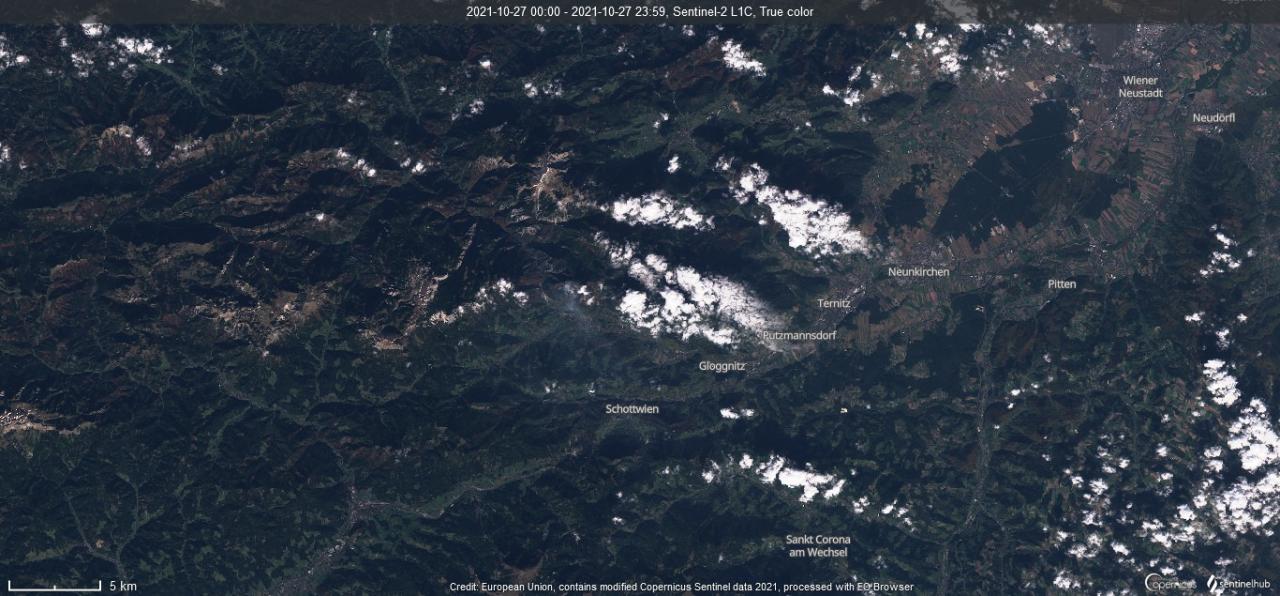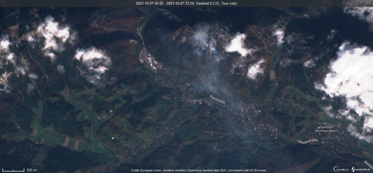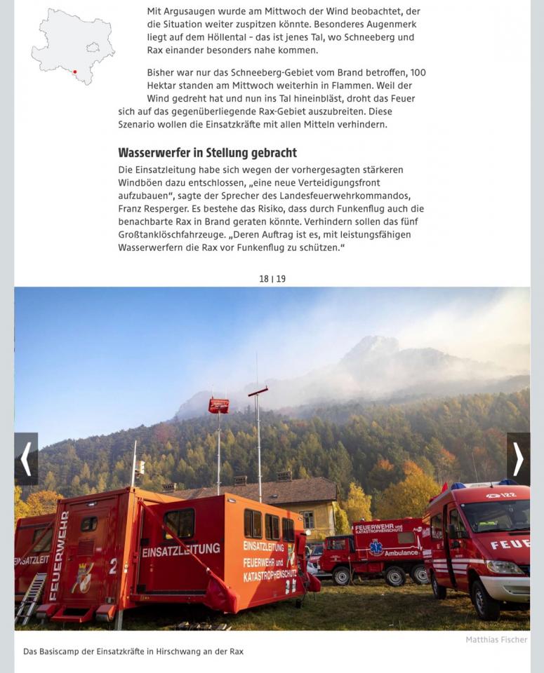 In Hirschwang an der Rax in Niederösterreich ist gerade ein enormer Waldbrand im Gange, 115 Hektar Wald sind bereits vernichtet.