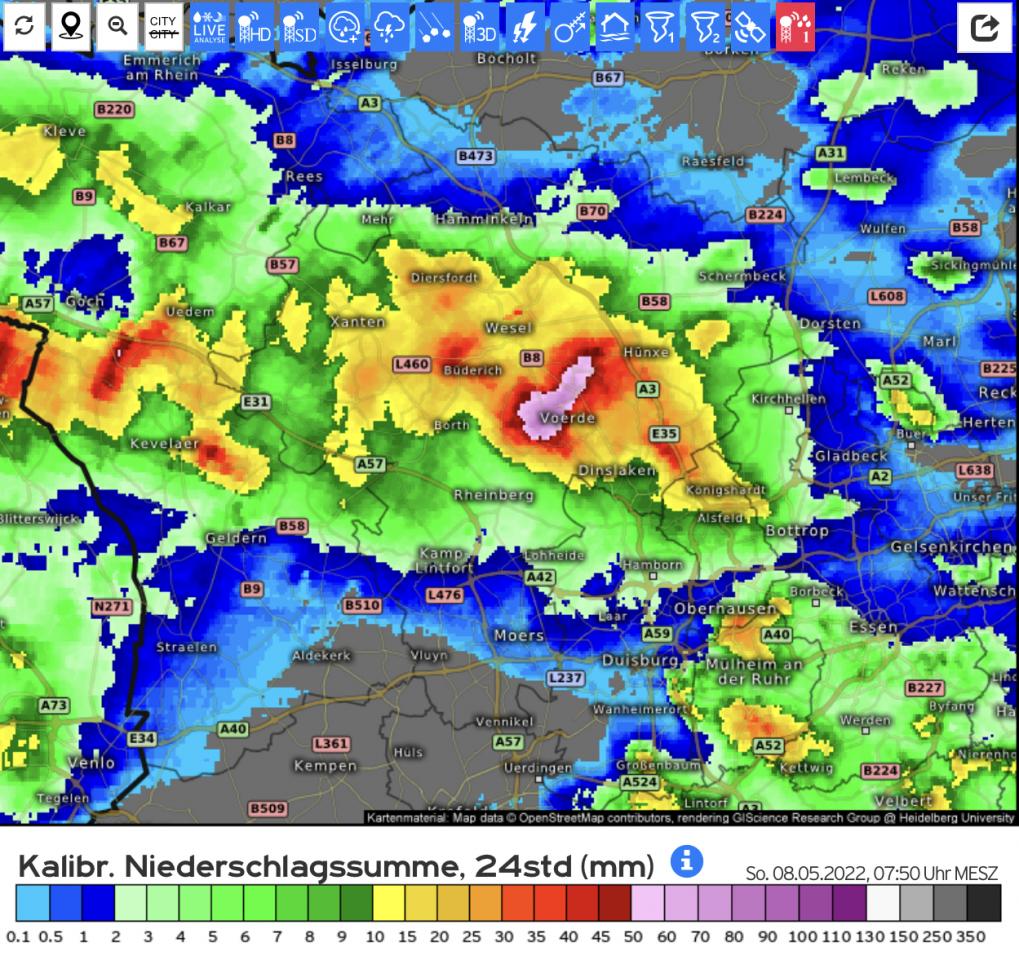 Takt 14,0°C, stark Bewölkt, mit einer durch eine Lücke scheinenden Sonne. Zwischendurch einzelne leichte Schauer. Regensumme bisher verhalten mit 0,4mm. In Schauern teilweise Taupunkte von 8°C, fühlt sich schon recht warm an.